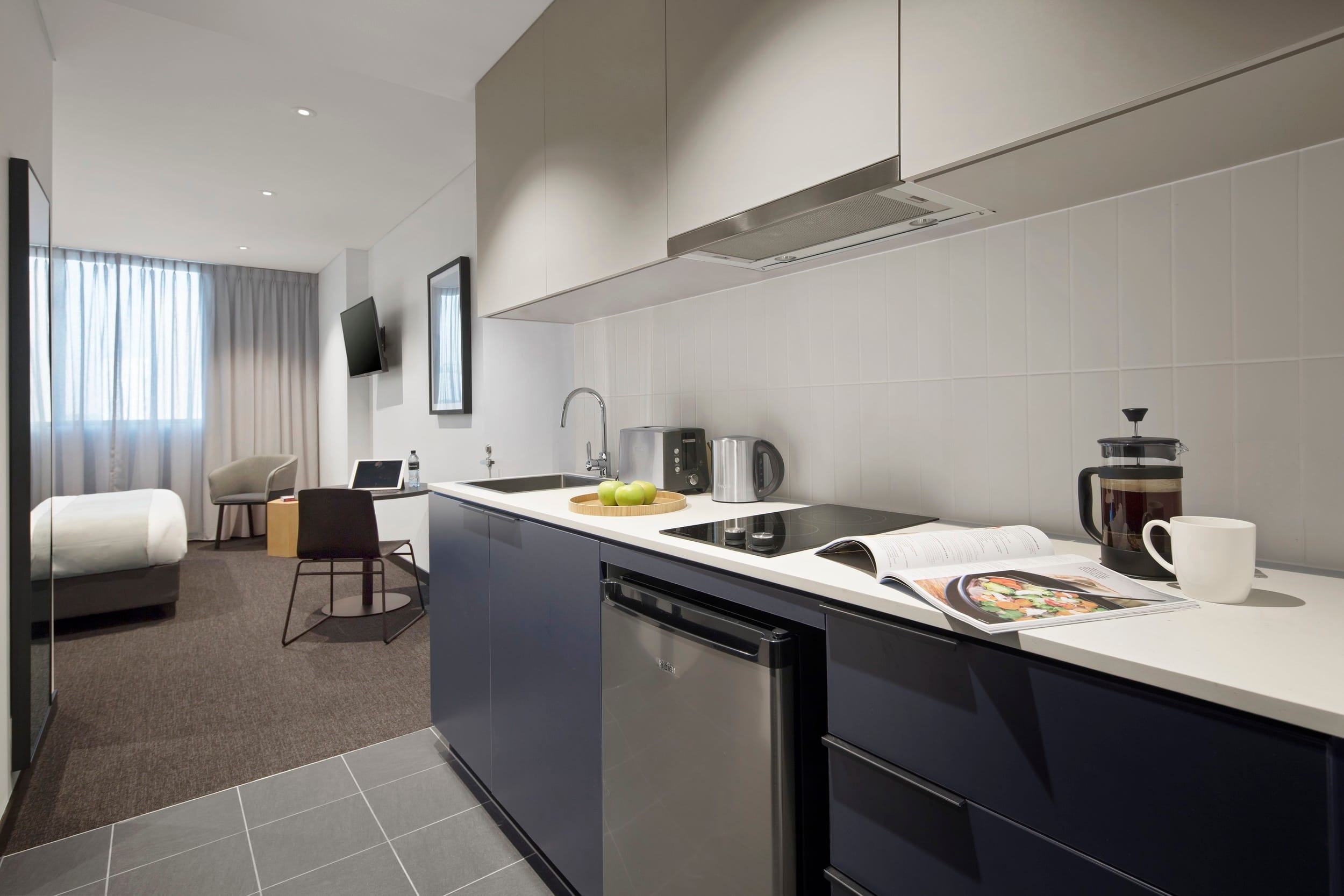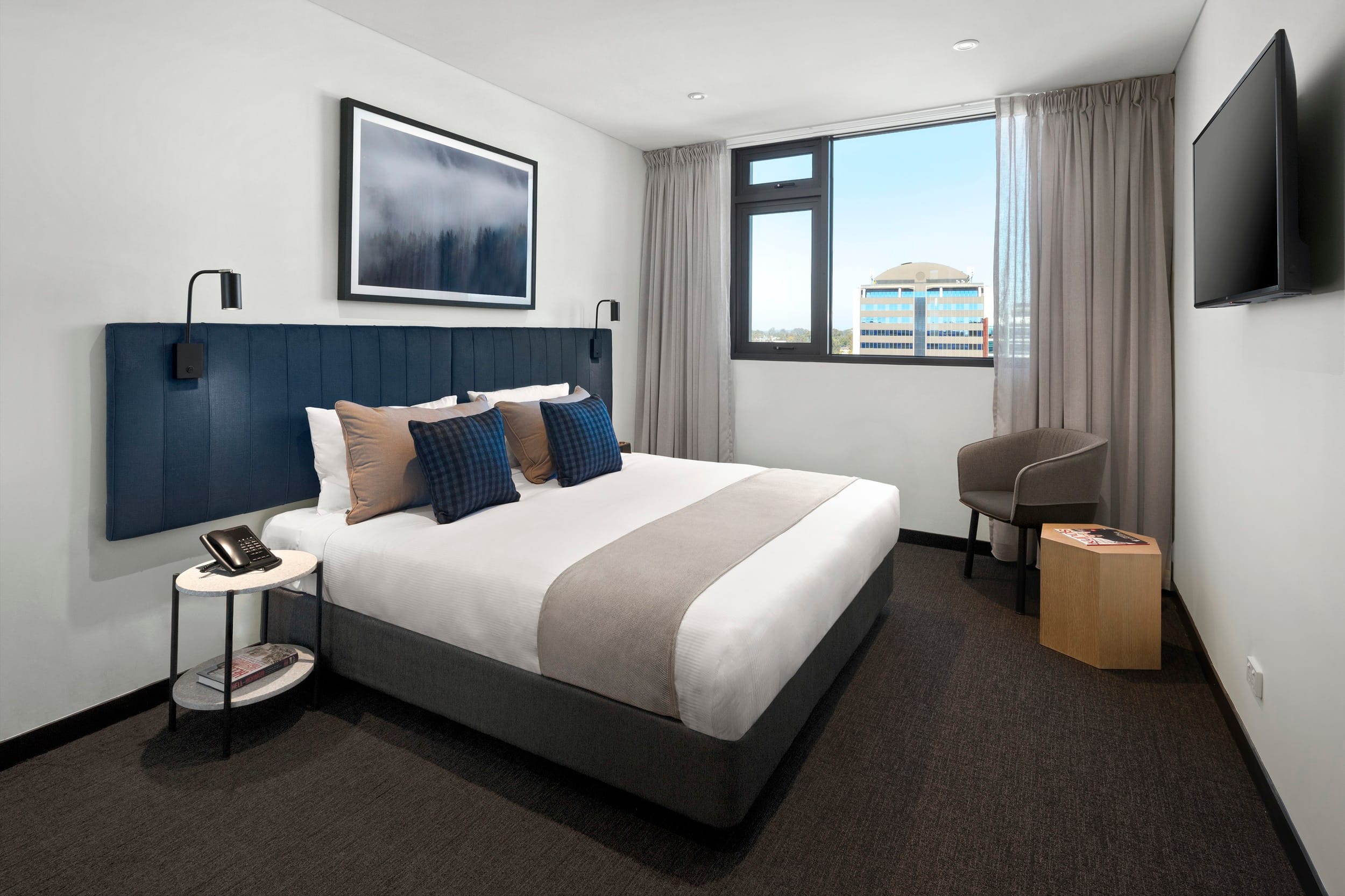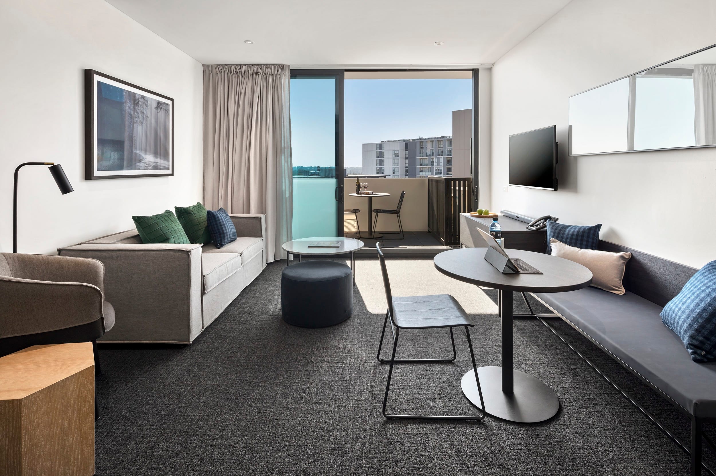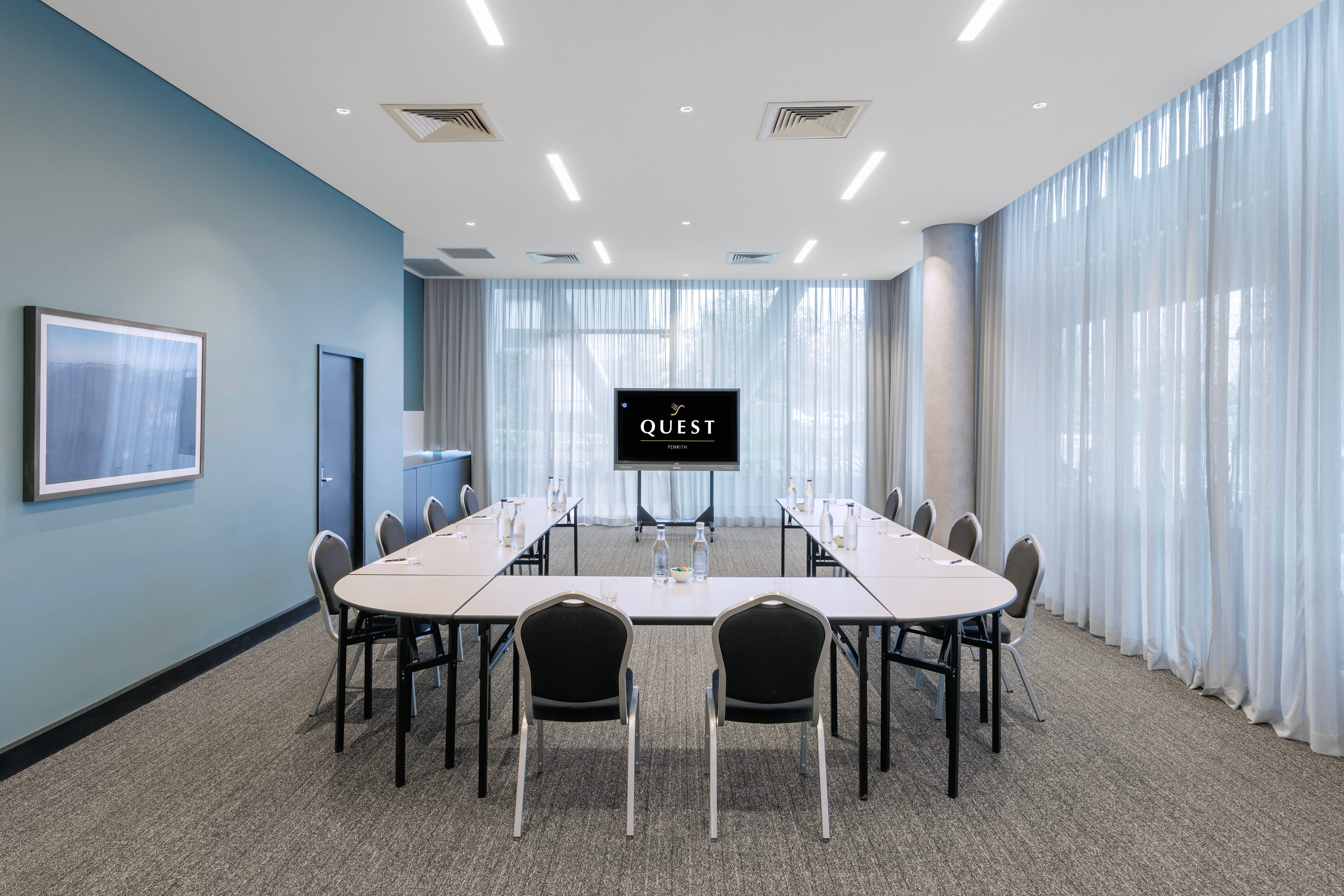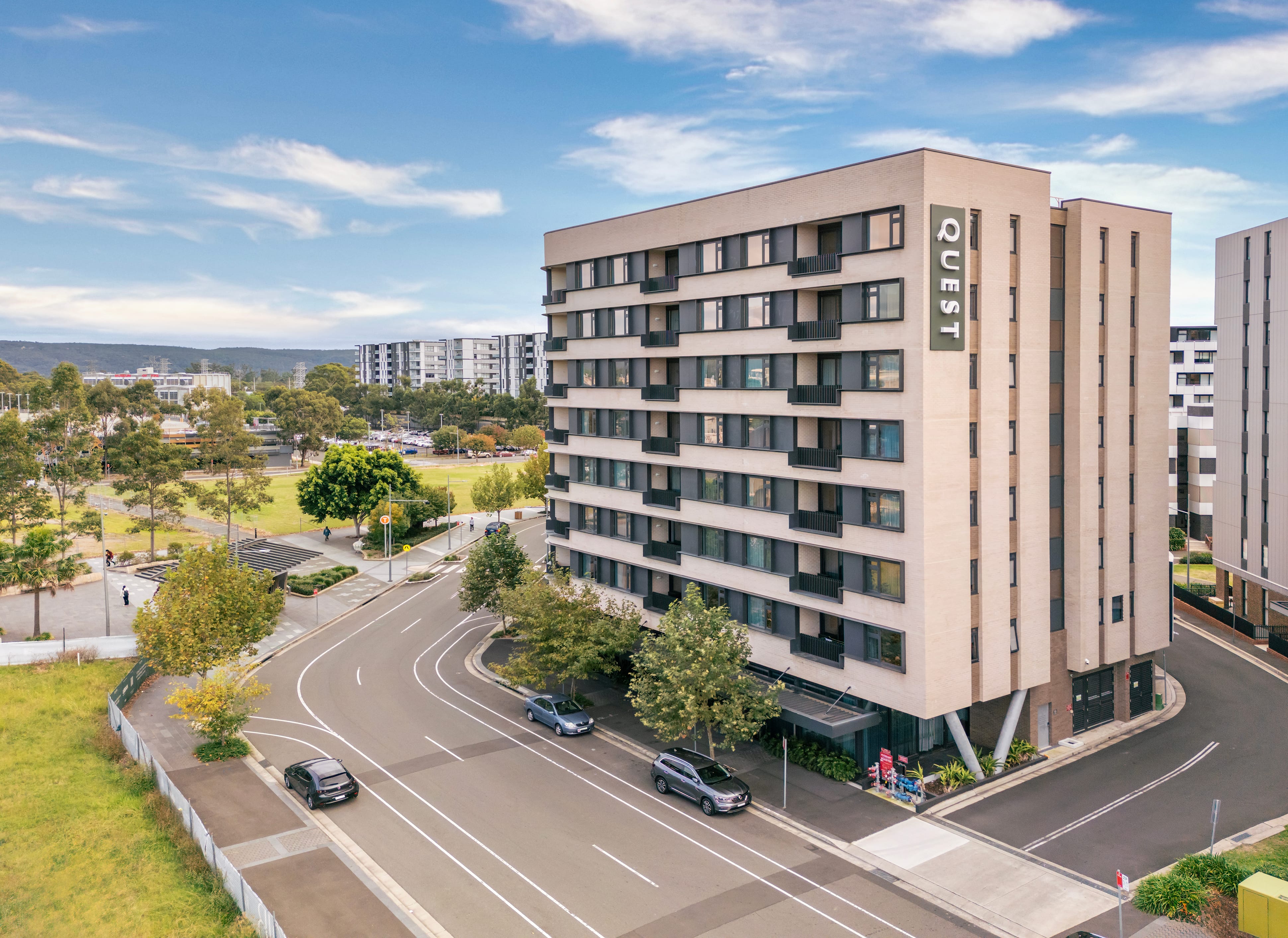 Quest Penrith is conveniently located adjacent to Penrith Train Station and Westfield Penrith close to the Sydney International Regatta Centre, Nepean Rowing Club, Penrith Valley Regional Sports Centre and the Joan Sutherland Performing Arts Centre and the upcoming Winter Sports World and Western Sydney International Airport (also known as Nancy-Bird Walton Airport) – both scheduled to commence operations in 2026-2027. We have a range of serviced apartments available, including Studio, 1- and 2- bedroom accommodation options, all fitted with kitchen and laundry facilities, plus conference facilities, high speed Wi-Fi and interconnecting room options. Maintain your wellness goals while staying with us by accessing our well-equipped gym, offering a seamless blend of ease and convenience for your fitness needs.